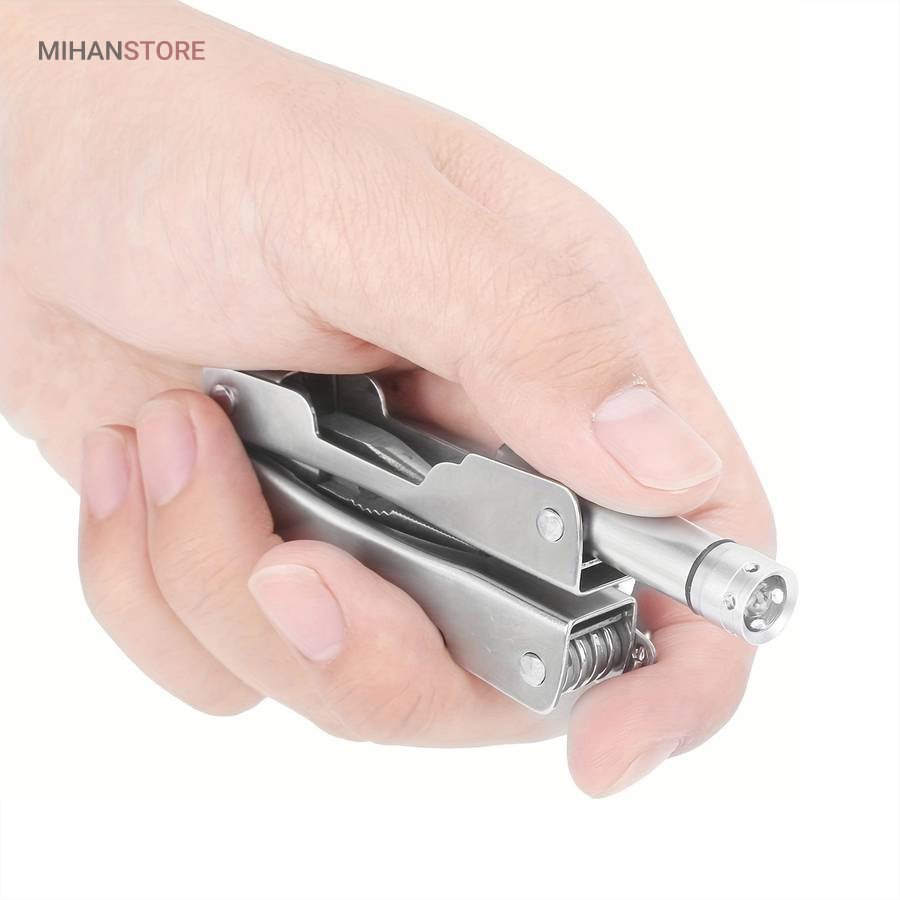 زمانی که قصد سفر ، شکار ، کوهنوردی یا کمپینگ و …… را دارید یک وسیله ی کاربردی که هم انبردست باشد و هم چراغ قوه و در عین حال توانایی انجام چندین کار مختلف را داشته باشد بسیار به کارتان خواهد آمد. انبردست تاشو چراغدار جیبی یک وسیله ی کاربردی چندین کاره میباشد که تنها ۷۰ میلی متر طول و ۱۳ میلی متر عرض دارد و بسیار بسیار کم حجم و سبک میباشدانبردست جیبی چراغدار چندین کاره دارای ابزارهای چراغ قوه ، چاقو ، اره ، پیچ گوشتی چهارسو ، پیچ گوشتی دوسو و دربازکن میباشدجنس این انبردست تماما از الیاژ فلزی ضد زنگ میباشد و بسیار مقاوم و بادوام ساخته شده استاین انبر دارای ۱ چراغ LED نور سفید میباشد که با ۳ عدد باتری ساعتی کار کرده و به روش پیچی روش و خاموش میشودانبردست جیبی چراغدار چندین کاره مناسب برای شکار ، ماهیگیری ، سفر ، کوهنوردی و کمپینگ ، همچنین از این محصول میتوان به عنوان یک ابزار کاربردی مهم و مفید برای داخل خودرو نیز استفاده کرد.