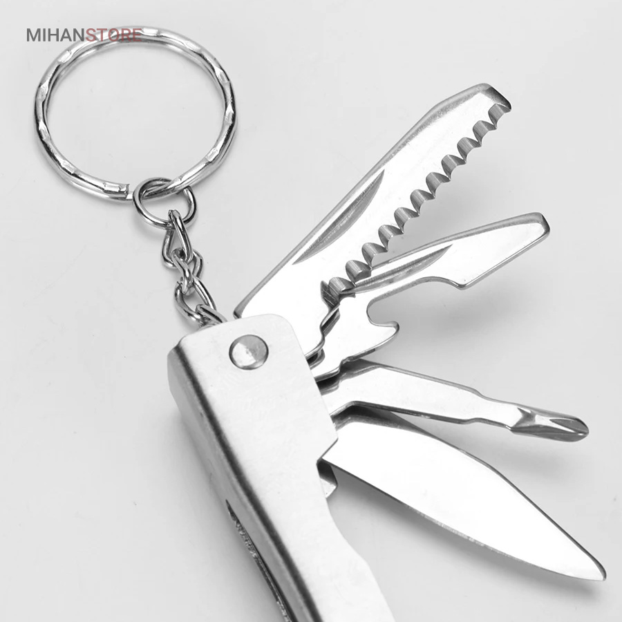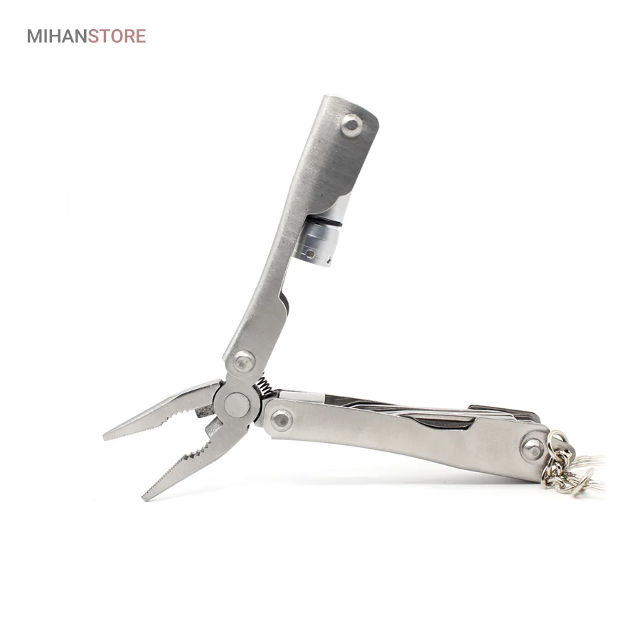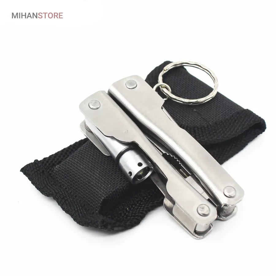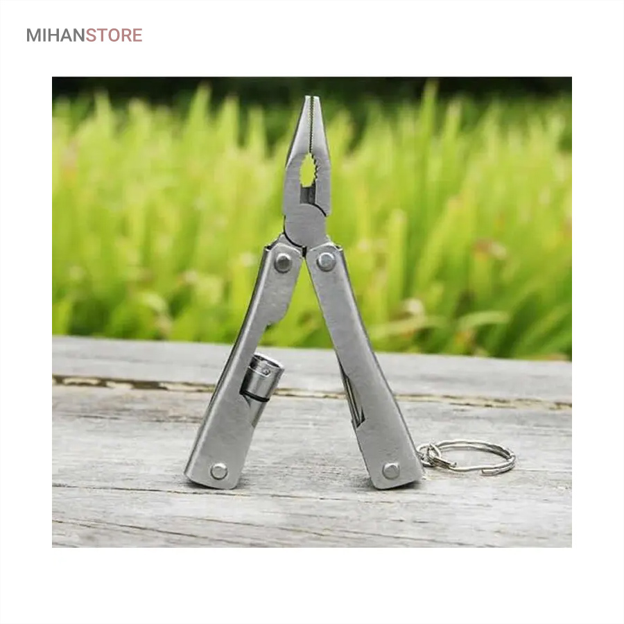 بسیاری مواقع در طول روز یا زمان سفر، به ابزار بسیار سادهای مانند پیچگوشتی، چاقو و… نیاز پیدا میکنید؛ ولی قطعا هیچکس نمیتواند همهی این ابزارها را در کنار خود داشته باشد. در چنین شرایطی یک مجموعهابزار، بسیار کارآمد خواهد بود. این محصول ۷ ابزار با ۹ عملکرد دارد. از ابزارهای داخلی این محصول میتوان به «در بطری بازکن» اشاره کرد که برای بازکردن در بطری نوشابه به شما کمک میکند. همچنین این محصول یک «تیغه چاقوی کوچک» دارد که برای آشپزی در زمان سفر کاربردی است. از دیگر ابزارها میتوان به «اره» اشاره کرد که تقریبا تیز است و برای کارهای ظریف استفاده میشود. یک «پیچگوشتی چهارسو» نیز در این مجموعه لحاظ شده است تا بتوان در صورت لزوم، با خیالی راحت از آن استفاده کرد. بدون شک کاربردیترین ابزار این مجموعه «چراغقوه» است. این چراغقوه به صورت پیچی روشن و خاموش میشود و نور مناسبی برایتان تولید میکند. اصلیترین ابزار این وسیله «انبردست» است که بهنسبت اندازهاش، قدرت مناسبی دارد. قسمت پایینی انبردست نیز به دلیل تیغههایی که دارد، مانند سیمچین عمل میکند. برای اینکه بتوانید این محصول را با راحتی بیشتری حمل کنید، کیف کوچکی نیز همراه آن عرضه شده است.