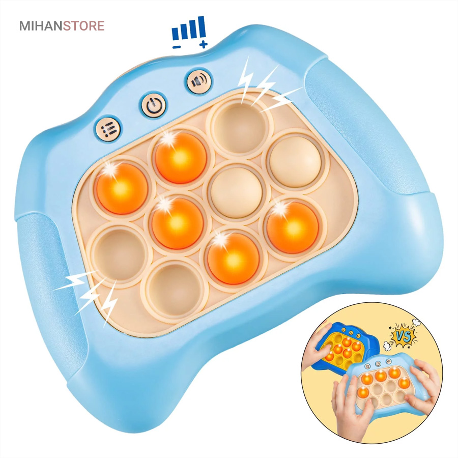 کنسول بازی پاپت گیم یک بازی مهیج سرعتی حرکتی است که علاوه بر سرگرمی برای درمان استرس و اضطراب بسیار کاربردی است . اگر از آن دسته از افرادی هستید که زیاد با موبایل کار یا بازی می کنید ، این بازی می تواند جایگزین بسیار مناسبی برای موبایل باشد . همچنین اگر در طول روز تحت تاثیر فشار و استرس های ناشی از کار قرار گرفتید ، می توانید تنها با این کنسول حال و هوای خود را عوض کنید. این بازی جزء دسته ی بازی های هوشی حرکتی قرار می گیرد که محدودیت سنی ندارد و از کودکان بالای 3 سال تا بزرگسالان نیز می توانند از آن استفاده کنند . مزیت های کنسول بازی پاپت گیم: سرعتی که برای فشار دادن دکمه ها استفاده می کنید باعث هماهنگی بین چشم و دست و همینطور تقویت دست ورزی می شود . این قابلیت برای کودکان دبستانی ، مخصوصا کلاس اولی ها بسیار ضروری است و تقویت انگشت ها باعث دست گرفتن بهتر مداد و عملکرد بهتر در درست کردن کاردستی و … نیز می شود . هنگامی که پوینت های قرمز را می بینید و آن ها را به خاطر می سپارید ، باعث تقویت حافظه و همچنین با به چالش کشیدن شما باعث افزایش توانایی حل مسئله می شود .
