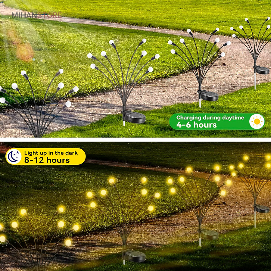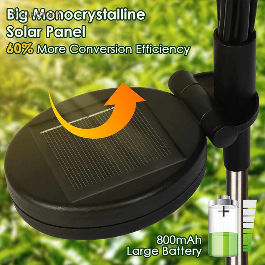 چراغ خورشیدی باغچه مدل گل شب تاب با طراحی جدید محصولی جذاب و کاربردی و ضد آب است.این چراغ با دارا بودن 8 لامپ LED از جنس ABS و بهره گیری از پنل خورشیدی خود ، انرژی رایگان خورشیدی را در طول روز در باتری داخلی خود ذخیره کرده و پس از غروب آفتاب با فرمان سنسور فتوسل موجود در پنل خورشیدی فعال میشود. محصول را میتوانید در هرجایی با نور مستقیم خورشید مثل حیاط ، باغ ، ویلا و بالکن نصب یا قرار داد و در طول شب از نور آن بهره برد. پشت پنل دکمه ON/OFF قرار دارد که با قرار دادن در حالت ON روشن و OFF خاموش میشود. شاخه های چراغ باغی شب تاب به هنگام وزش باد در تاریکی شب تکان میخورند، و با نور درخشان و زیبا، خانه و باغ شما را هر شب ستاره دار میکند و جلوه ای خاص به فضای باغ و ویلای شما میبخشد.
