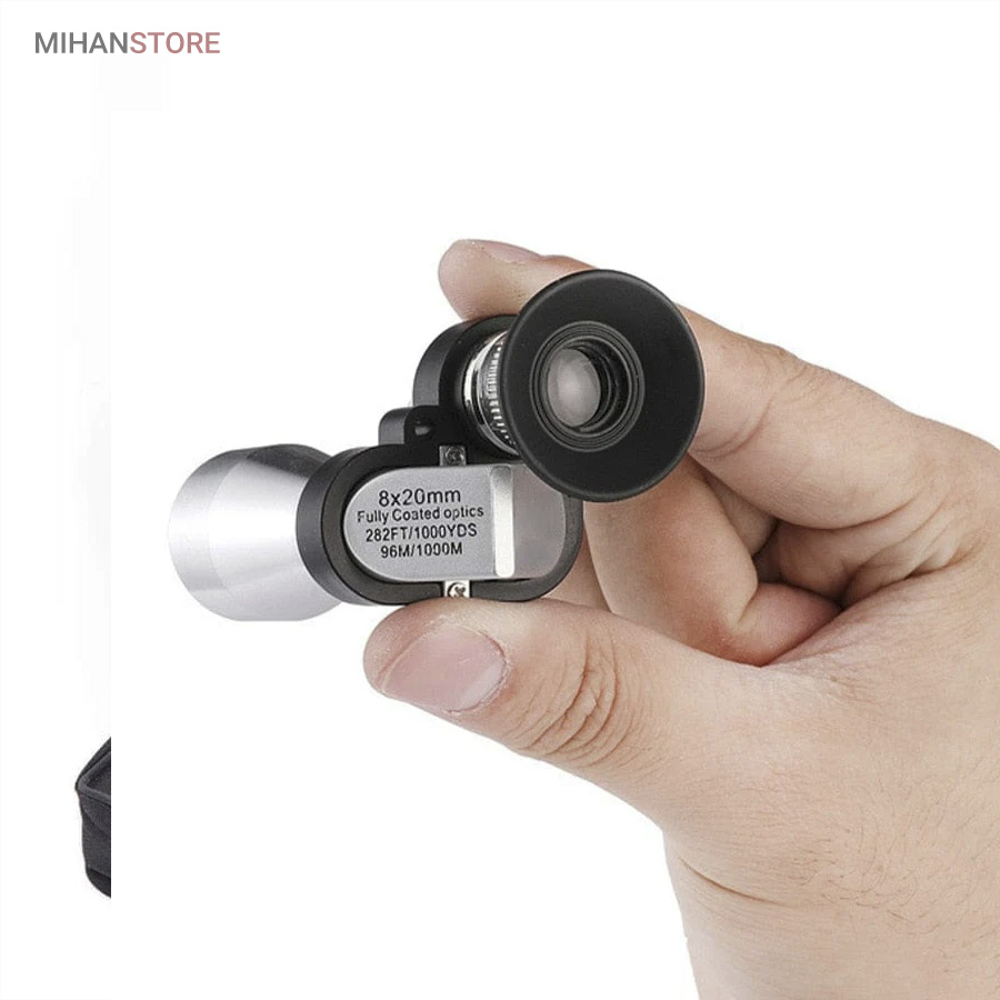 دوربین‌های شکاری کوچک (یا جیبی) از جمله جالب‌ترین و کاربردی‌ترین مظاهر فناوری‌های نوین محسوب می‌شوند. این دوربین به خاطر زوم بالا و قدرت فراوان به عنوان تلسکوپ جیبی همراه نیز کاربرد دارد موقع تماشای ماه و ستارگان با این دوربین فوق العاده متحیر خواهید شد. این محصول فوق العاده با کیفیت بوده و قابلیت بزرگنمایی تا 8 برابر را با کم ترین افت کیفیت دارد. سایز کوچک و وزن سبک این دوربین یکی از مزیت های اصلی این کالا می باشد. همراه این دوربین یک بند و یک کیف جهت حمل آسان وجود دارد.