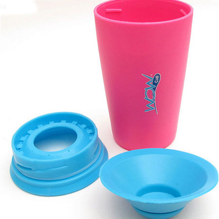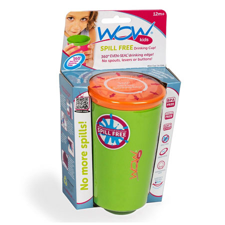 لیوان Wow Cup را می توانید به صورت 360 درجه بدون آن که قطره ای از مایع درون آن، به بیرون بریزد بچرخانید. مکانیسم نوآورانه لیوان با درپوشی دولایه که تنها با فشردن لب روی لایه بیرونی درپوش لیوان، مایع خارج میشود که این امر اجازه هدر رفتن و ریختن نوشیدنی را نمیدهد. از دیگر ویژگی های این لیوان دارا بودن تشتک سر پلاستیکی می باشد که مانع از آسیب دیدن و کج شدن دندان های کودک شما می شود. همچنین نوع طراحی و رنگ های شاد این محصول کودک شما را تشویق به نوشیدن مایعات خواهد کرد.