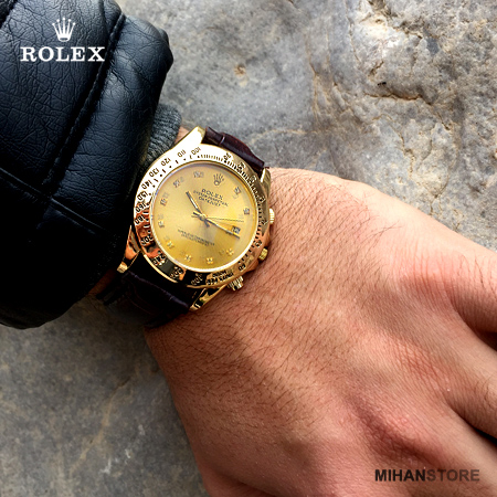 ساعت مچی رولکس WINNER یکی از جدیدترین مدل های عرضه شده کمپانی معتبر ROLEX می باشد. این ساعت دارای بند چرم بسیار با کیفیت و صفحه شیشه ای ضدخش می باشد که در 2 رنگ بند مشکی و قهوه ای و همچنین صفحه نقره ای و طلایی عرضه شده است. این ساعت دارای تقویم روز شمار می باشد. هم اکنون می توانید ساعت مچی  ROLEX را همراه با جعبه شکیل و  6 ماه گارانتی تعویض با قیمت استثنایی از فروشگاه میهن استور سفارش دهید.