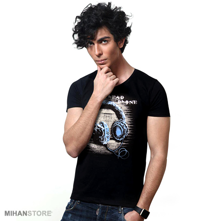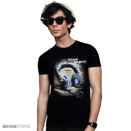 تی شرت مردانه طرح هدفون (مشکی)
