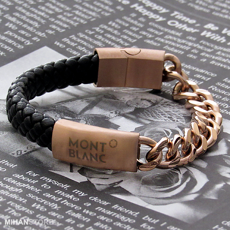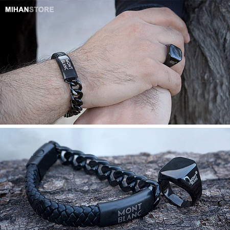 دستبند چرم و استیل طرح Mont Blanc نمونه‌ای از زیورهای ظریف و در عین حال پرطرفدار از جانب همگان است که با اکثر رنگ‌های لباس همخوانی داشته و در عین حال متفاوت دیده می‌شود. این دستبند فوق العاده شیک از یک لایه چرم و یک لایه زنجیر استیل و نماد زیبای برند Mont Blanc با رنگ های لوگو مسی، طلایی و مشکی عرضه شده است.